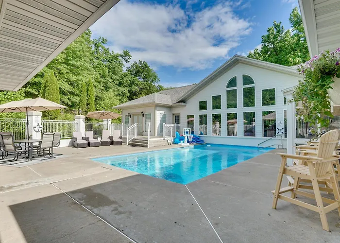 Die Pool, Hot Tub And Pickleball Court Lake Ozarks Home verfügt über einen Essbereich im Freien mit einem Kühlschrank, einem Herd und Küchenutensilien. Der Flughafen Robert Regional liegt 105 km von der Villa entfernt und ist zudem leicht zu erreichen. Wandern sorgen einen abwechslungsreichen Urlaub.